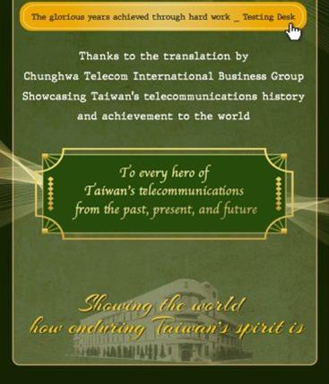 感謝中華電信國際分公司的幫助,翻譯並向海外推廣首部(共10支)英文版的台灣電信產業紀錄片~得以讓全世界看見台灣電信的百年璀璨、以及台灣電信職人的世代耕耘與榮光歲月!