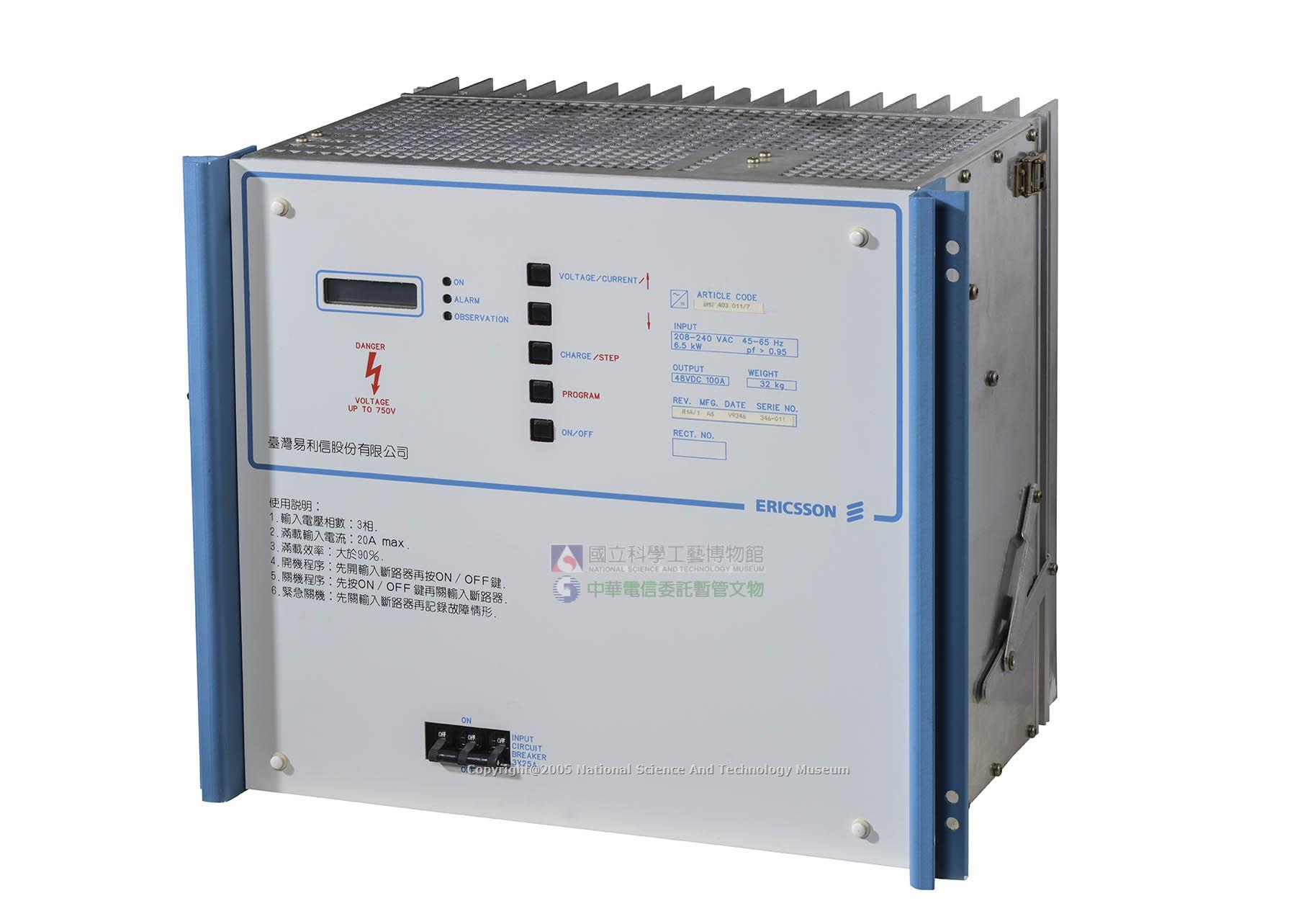 此電容器為一固定型電容器,兩極間以雲母為絕緣體,電容量為0.05微法拉,可耐直流4KV電壓。