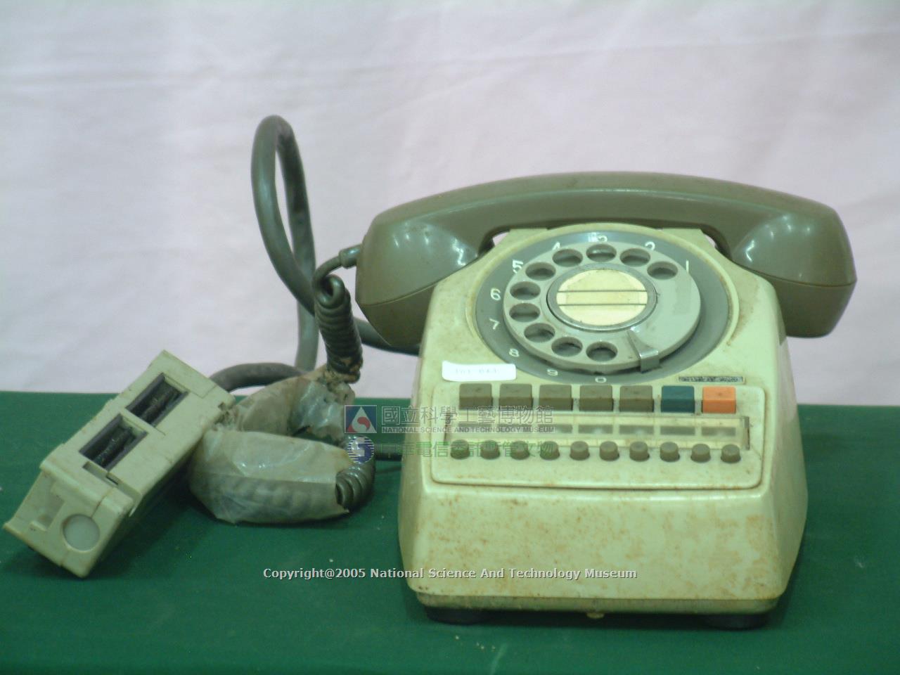 本方型磁石式電話桌機為日本沖電氣公司之產品,已將送受話器整合成一單體的桌上型磁石式話機,電鈴收在機殼內,附有接線盒,可連接外線。適合家庭、公司行號及機關通信用。
